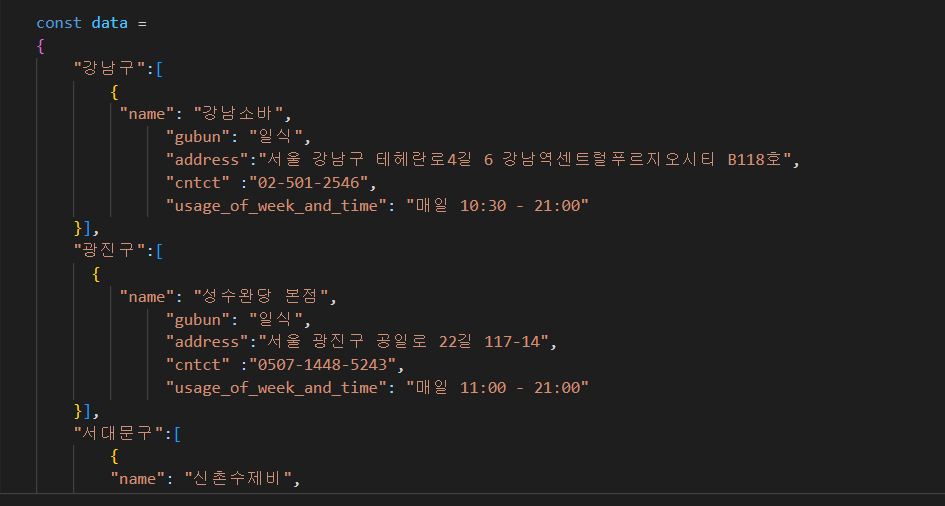 누를 때마다 데이터가 들어가고, data[currentGu]처럼 구를 특정하고,