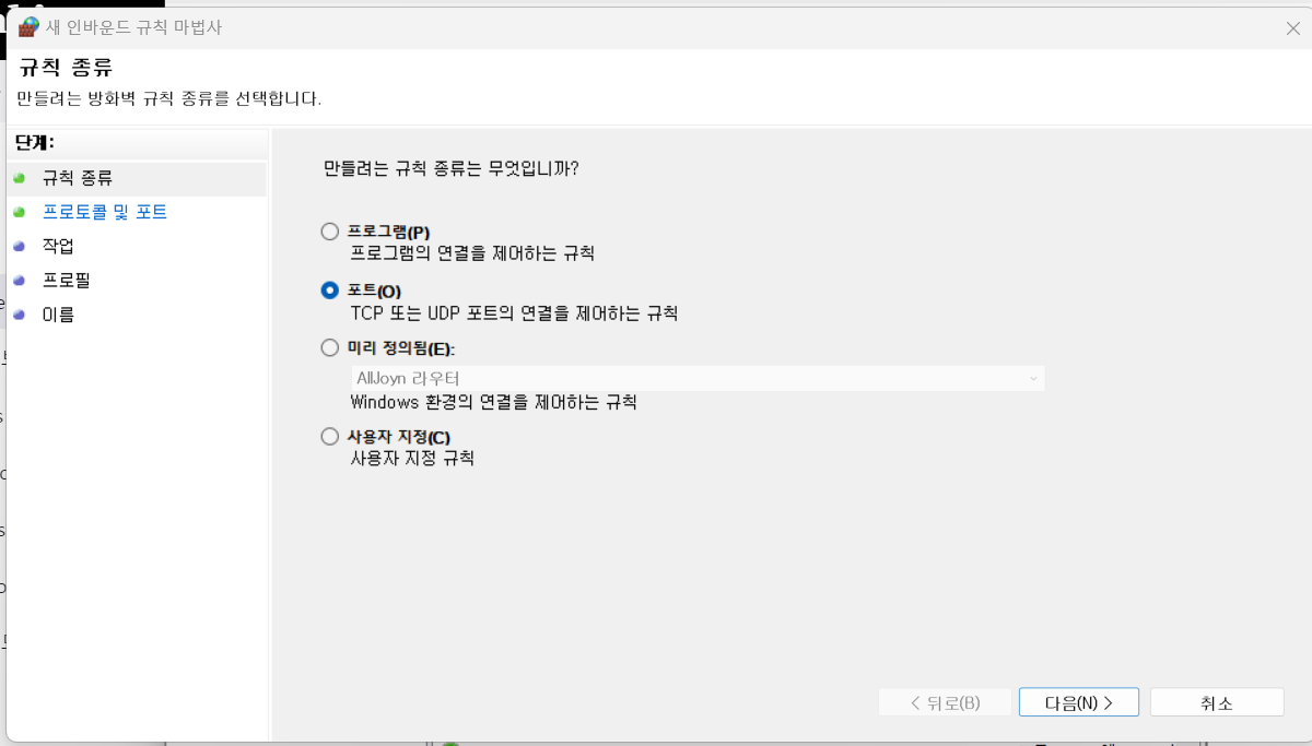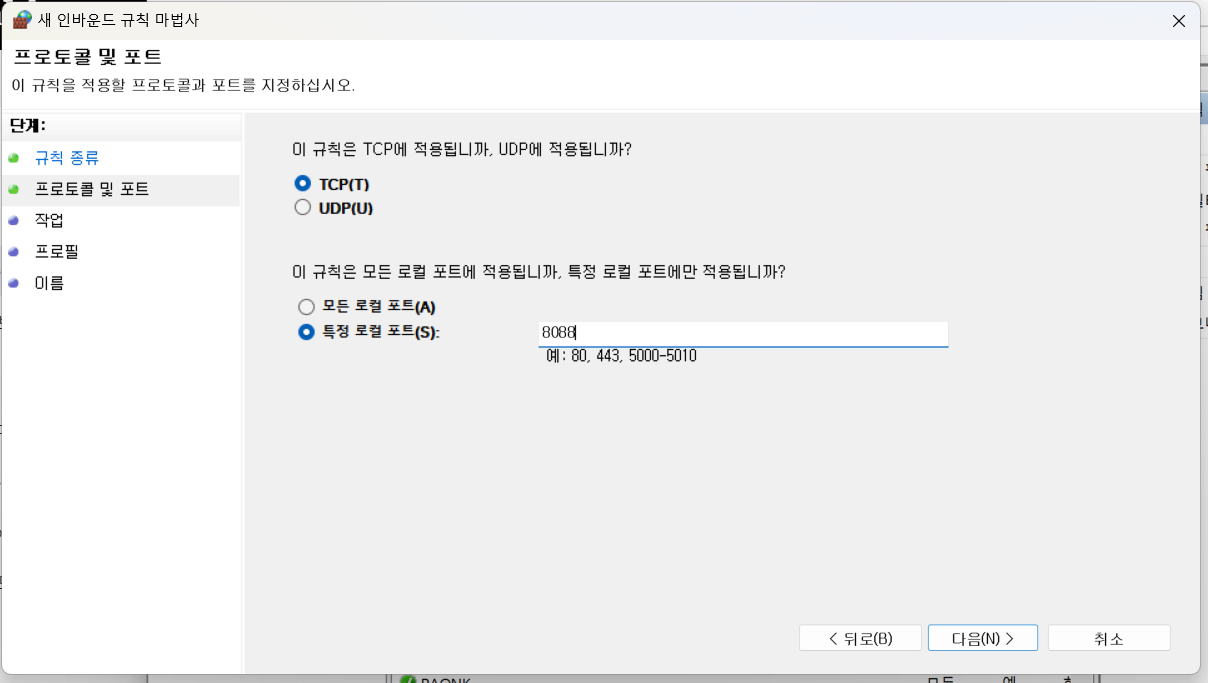 윈도우 방화벽에서 특정 TCP 포트 열기 본문