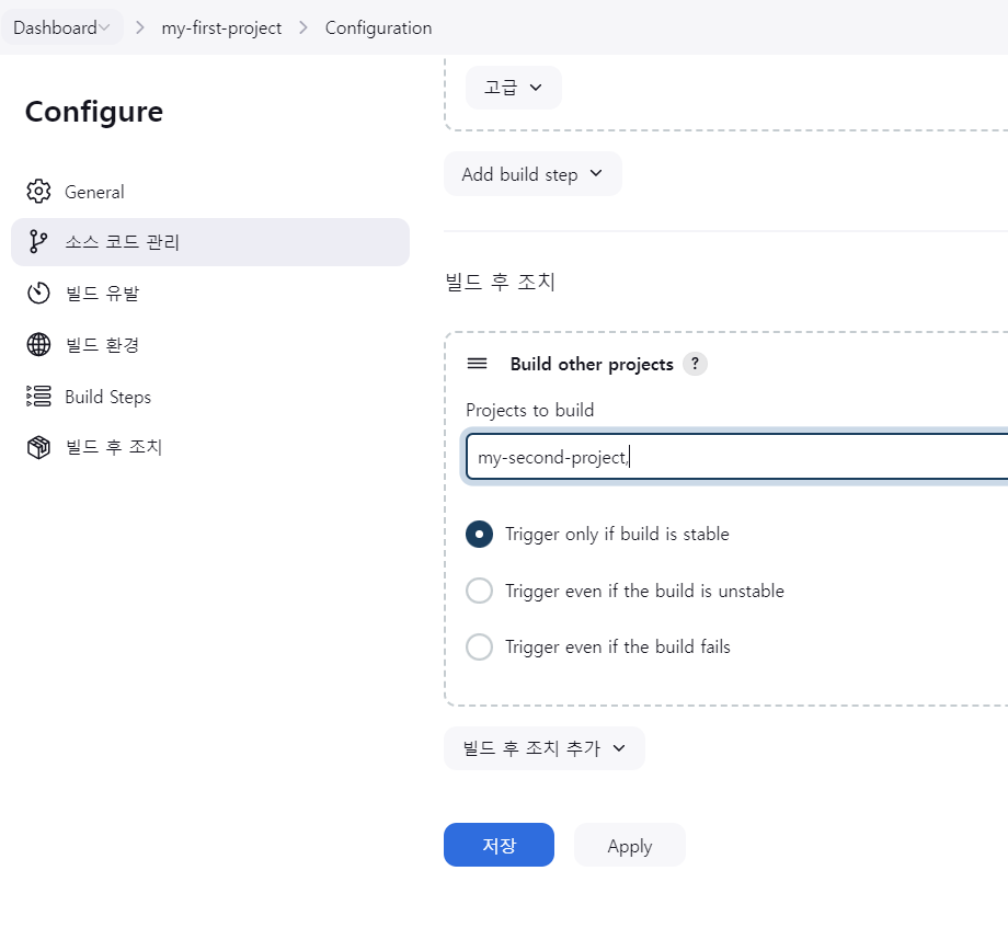 첫번째 프로젝트가 빌드 된 후 second를 불러온다.